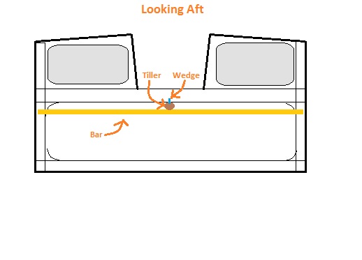 You attach a fixed bar just under the tiller so that when you want to lock the tiller, you introduce the wedge into the groove and hammer it in with the palm of your hand, forcing it down against the bar (or up, if you groove the bottom) and jamming it in place.